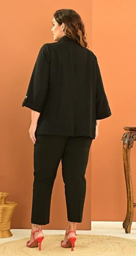 O blazer preto é a peça mais poderosa e versátil do guarda-roupa feminino, e esta versão eleva o clássico a um novo nível de conforto e estilo. Desenhado para ser o toque final de sofisticação em qualquer produção, ele combina um corte atemporal com a leveza de um tecido fluido. É a escolha perfeita para a mulher que busca uma peça-chave que transita com elegância entre o formal e o casual.