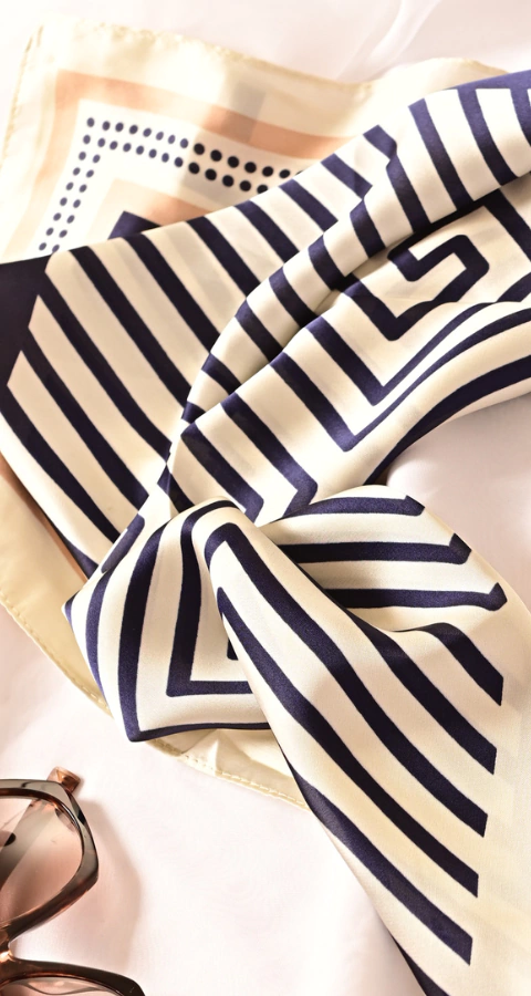 Os lenços tem formato quadrado. São leves e não esquentam muito por serem feitos de tecidos como seda, cetim, crepe de chine. Por outro lado, podem ser usados o ano todo, de norte a sul do país.